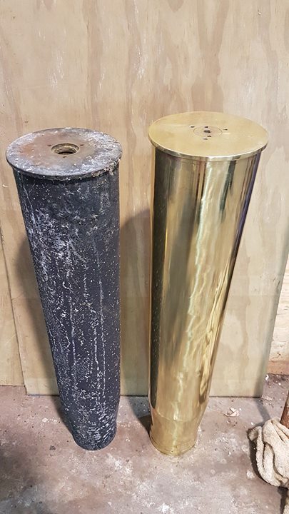 Before and after of brass bullet shells